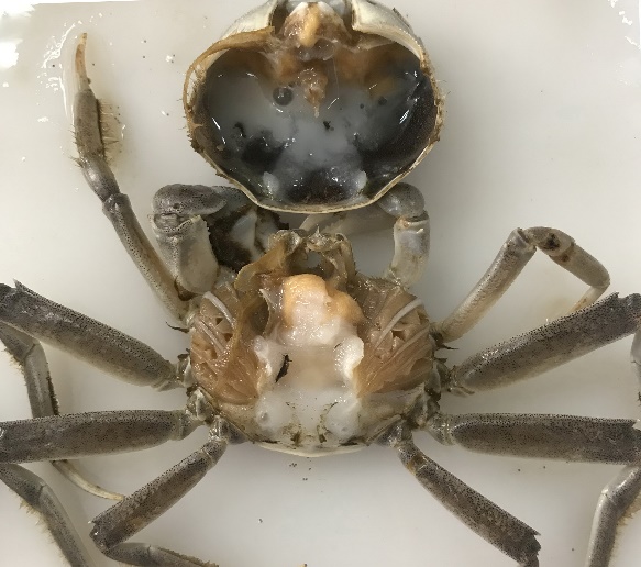 河蟹"牛奶病"是一种以河蟹体内蓄积牛奶状液体为特征的真菌性疾病。该病传染性极强,越冬扣蟹和种蟹的发病率可达80%以上,病死率近100%,给河蟹养殖带来巨大损失。该病于2018年秋在盘锦地区发现,现已成为我国北方地区河蟹的最主要病害,特别是今年,严重影响河蟹产业的稳定和健康发展。