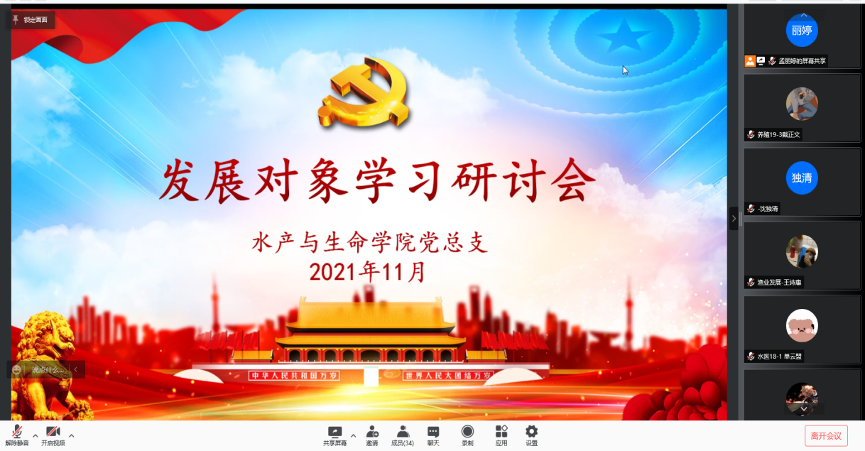 11月12日,公司党总支在线上召开第十一期发展对象学习研讨会。全体第十一期发展对象参加会议,会议由组织员孟丽婷主持。