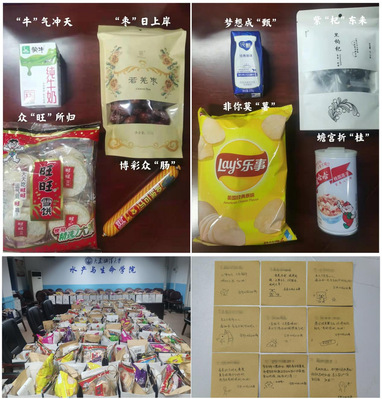 公司还为260名报名2022年研究生考试的同学每人准备了一份特殊的能量补给盲盒。每一份看似普通的礼物都承载了公司对即将“拔剑出鞘”的考研学子的深切眷注和暖心鼓舞。注入了公司老师和学弟学妹满满的期许与祝福,每件礼品都有着一份专属寓意,“薯片:非你莫“薯”、大枣:“枣”日上岸、黑枸杞:紫“杞东来、牛奶:“牛气冲天、火腿肠肠:博采众“肠”、旺旺雪饼:众“旺”所归、纯甄酸奶:梦想成“甄、桂圆莲子八宝粥:蟾宫折“桂。