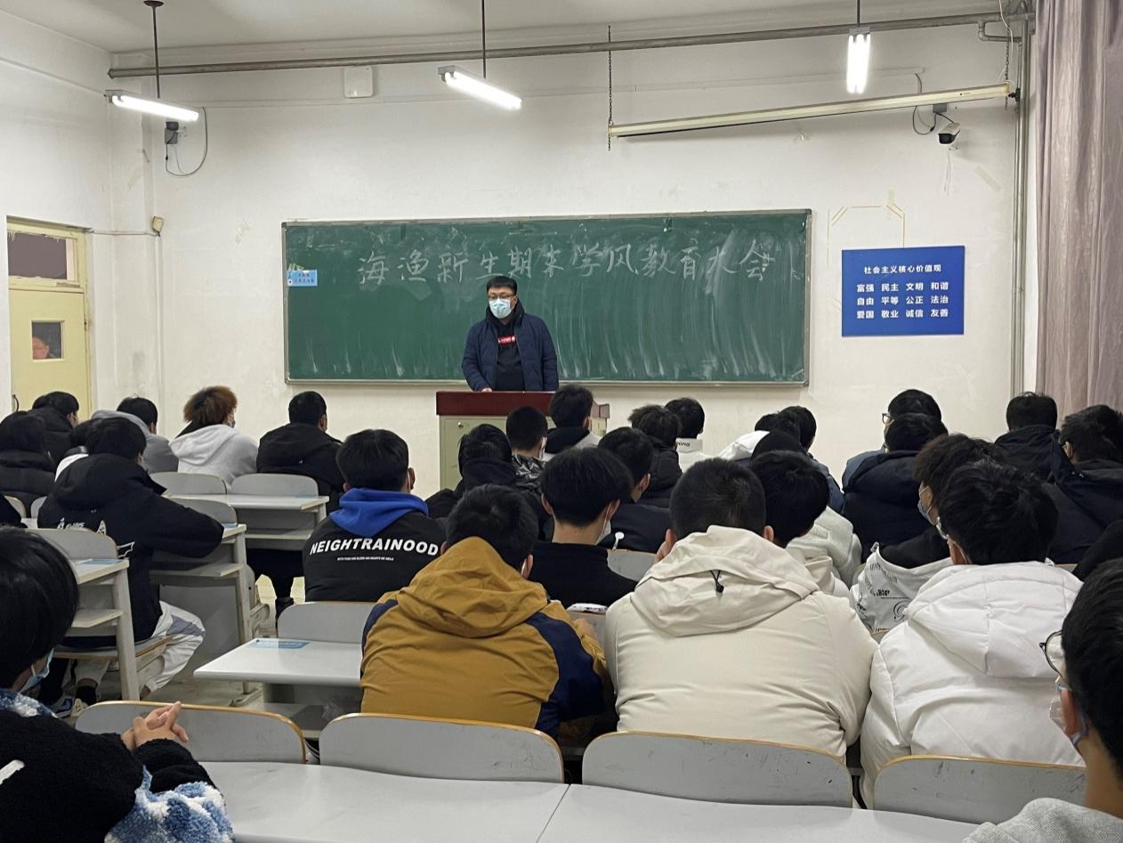 会上,教研室主任邢彬彬进行了专业介绍,针对员工们关心的专业方向特色、就业前景和发展现状三个方面进行了阐述,并表示海渔专业具有悠久历史以及鲜明的特色。临近期末,他强调诚信考试的重要性和必要性,希望同学们能在考试前的时间里攻克学习难题,多与任课教师沟通,合理安排作息时间。随后,海渔2021级班导师与同学们进行了交流,要求同学们端正学风、严肃考纪。