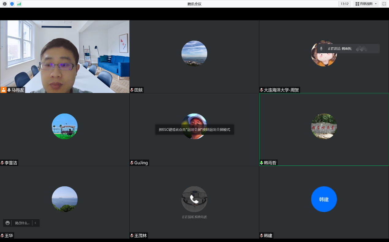 3月15日,水族科学与技术教研室通过线上会议的方式集体学习《关于全面加强校园疫情防控工作的通知》,安排部署封校期间的相关工作。教研室全体教师参加了此次会议,副经理韩雨哲出席会议。