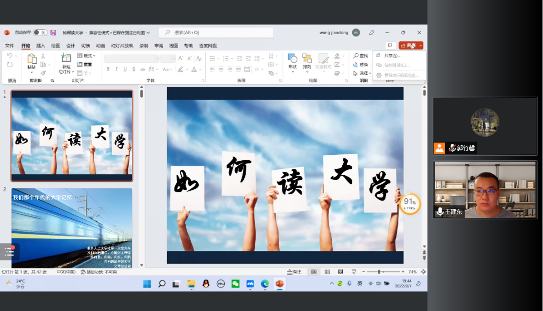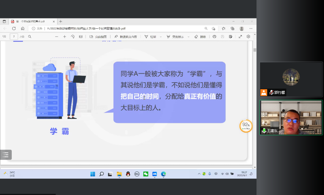 9月7日,公司在线上召开2022级新生主题教育讲座。公司团委书记王建东主讲,辅导员郭竹馨及2022级全体新生参加。
