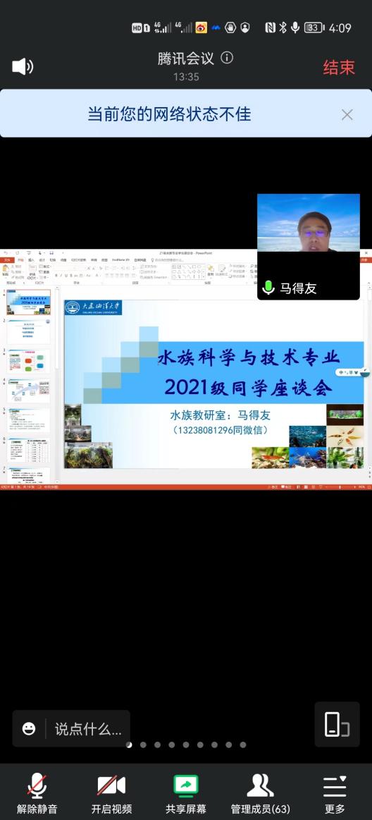 9月16日,水族科学与技术专业召开2021级员工交流会。教研室主任马得友,班主任李雪洁、谷晶,2021级全体同学参加会议。会议由谷晶主持。
