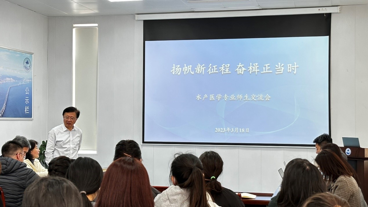 宋林生立足于国家战略需求和产业发展前沿,解析了水产医学学科与水生动物医学专业的内涵、现状和发展方向。他指出,公司第三次党代会刚刚胜利闭幕,确立了公司未来一段时期的科学定位和战略规划,标志着公司发展已经站在了新的历史起点上。他希望同学们志存高远,厚植家国情怀,努力练就自身过硬本领,积极投身祖国水产事业发展,为中华民族伟大复兴贡献自己的力量。丁君介绍了水生动物医学专业的发展历程与建设成就。与会师生还就专业发展空间、就业前景、研究生报考等进行了交流讨论。