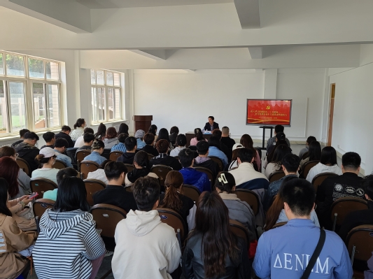 纪庆晓从深刻学习领会党的二十大精神的重大意义、坚定不移拥护“两个确立,深入学习习近平总书记关于教育的重要论述、培养社会主义建设者和接班人两个方面,阐述了党的二十大召开的重大意义,要求全院师生深刻领会“两个确立”的决定性意义,坚决做到“两个维护”;要以习近平新时代中国特色社会主义思想为指导,按照习近平总书记关于教育的重要论述、关于青年和青年工作的重要讲话精神,健全“三全育人”机制,加强思想引领,鼓励苦学本领,努力培养德智体美劳全面发展的社会主义建设者和接班人。