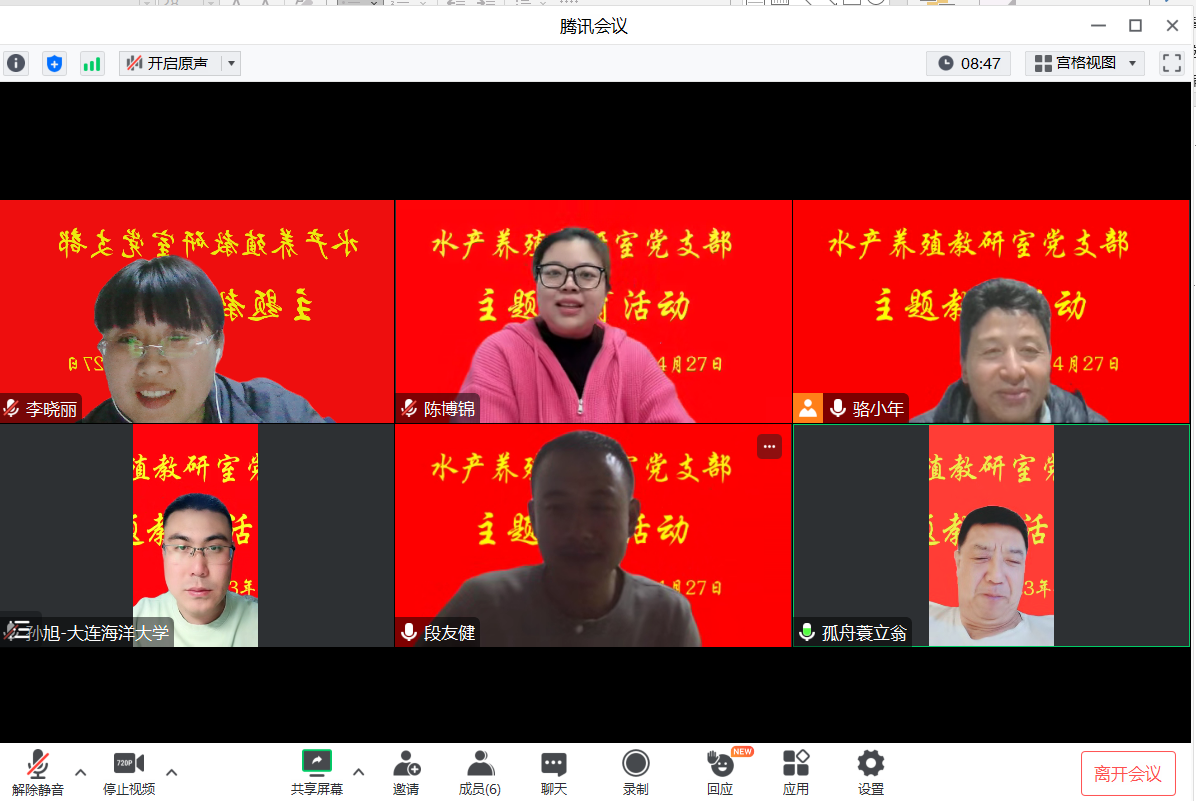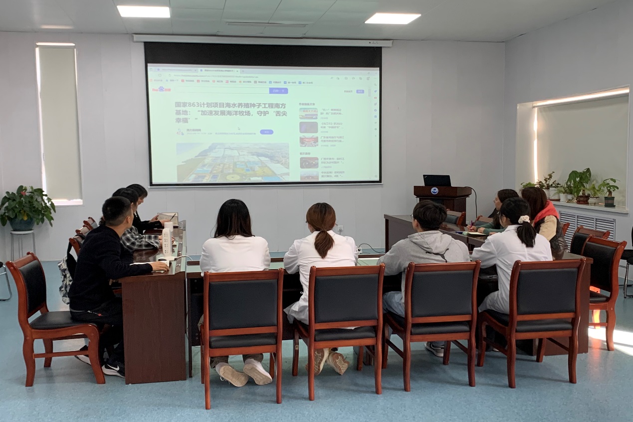 习近平总书记指出,要树立大食物观,既向陆地要食物,也向海洋要食物,耕海牧渔,建设海上牧场、“蓝色粮仓”。种业是现代农业、渔业发展的基础,要把这项工作做精做好。要大力发展深海养殖装备和智慧渔业,推动海洋渔业向信息化、智能化、现代化转型升级。各支部党员对习近平总书记对现代农业和海洋渔业发展提出的要求感到振奋、感到责任重大。大家结合自身教学科研经历,交流耕海牧渔,建设海上牧场、“蓝色粮仓”的重要性和紧迫性,均表示要以总书记的重要指示精神为指导,立足岗位,积极践行大食物观,通过科研与生产实践相结合,不断推进我国北方特有海洋经济物种种质资源的保护和选育工作,保障渔业的可持续发展。