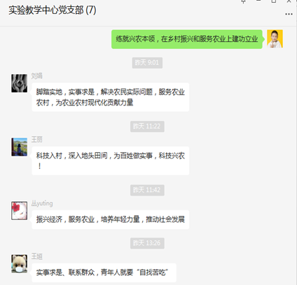 各支部党员结合自身岗位实践和专业生产实习,畅谈交流,大家纷纷表示要要落实党的二十大关于农业强国建设的部署要求,立足水产产业,把指导实习、科研和校企合作紧密结合起来,把课堂学习和乡村实践紧密结合起来,厚植爱农情怀,练就兴农本领,志存高远、脚踏实地,将论文写在祖国大地上,为加快推进农业农村现代化、全面建设社会主义现代化国家贡献力量!