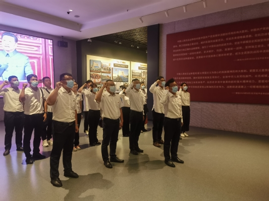 参观结束后,大家重温入党誓词,在宋林生的领誓下,面向党旗高举右手庄严宣誓,铿锵的誓言在展厅内回荡,每个人的心中都更加坚定了矢志不渝跟党走的初心使命。