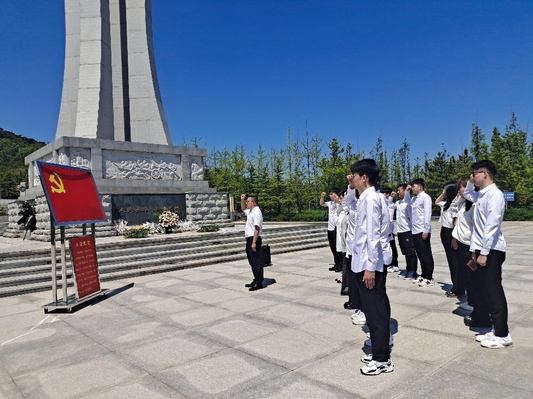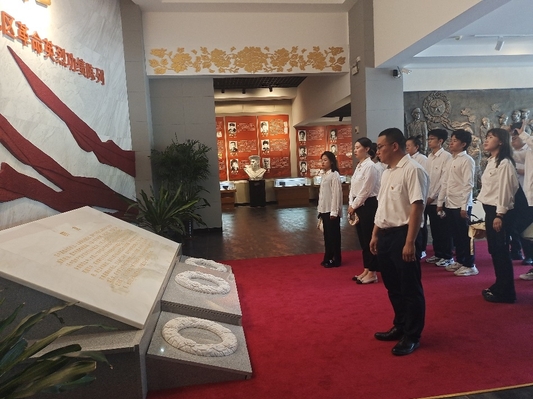 在庄严肃穆的氛围中,参观活动正式开始,首先,由员工党员代表姜沛言在纪念碑面前进行讲话,他表示全体党员应勿忘革命先烈,学习革命先烈“流血、流汗、不流泪”的精神,在学习工作中始终保持昂扬斗志,彰显党员风采。随后,王建东带领全体党员进行宣誓,铮铮誓言在党旗下响起,全体党员为烈士擦拭墓碑献上鲜花并怀着复杂而无比沉重的心情默哀一分钟。最后,大家进入烈士纪念馆参观,怀着沉重的心情穿过陈列馆那血火交融的历史长廊,党员们深入了解革命先烈的英勇事迹,体会先辈艰辛历程,英烈们用鲜血和生命所诠释的爱国主义精神深深地激励着每一个党员。