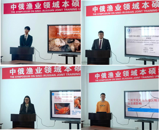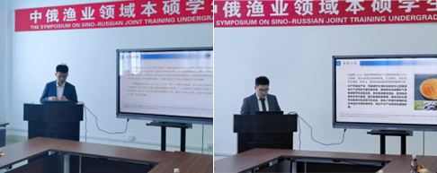 俄罗斯科公司远东分院副经理谢尔盖·伊万诺维奇·马斯列尼科夫教授分享了帝王蟹、海参、鱼类和藻类等海洋生物的研究进展。随后,公司的本科生和硕士研究生共8人作学术报告。20级本科生胡睿同和张家豪对壳聚糖酶的来源及壳寡糖在水产动物中的作用做了系统介绍。