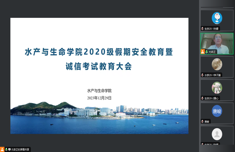 2020级辅导员尤奇正强调了离校前需在学工系统进行假期报备的填写,假期应注意安全,离校前做好寝室卫生。随后提醒员工们要诚信考试,遵守纪律。并且再次强调员工文明风貌问题,作为一名老员工应该有老员工的精神面貌。最后鼓励员工充分利用假期来丰富自己,为自己毕业之后做好打算。