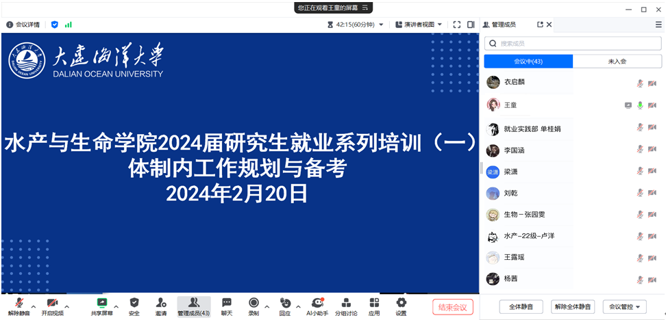 为进一步推动2024届研究生就业工作,公司于2月20日启动2024届研究生就业系列培训活动,线上举行了第一期培训会《体制内工作规划与备考》,公司纪委书记衣启麟、研究生辅导员赵康延、王童、公司就业实践部及部分应届毕业研究生共计50余人参加会议。